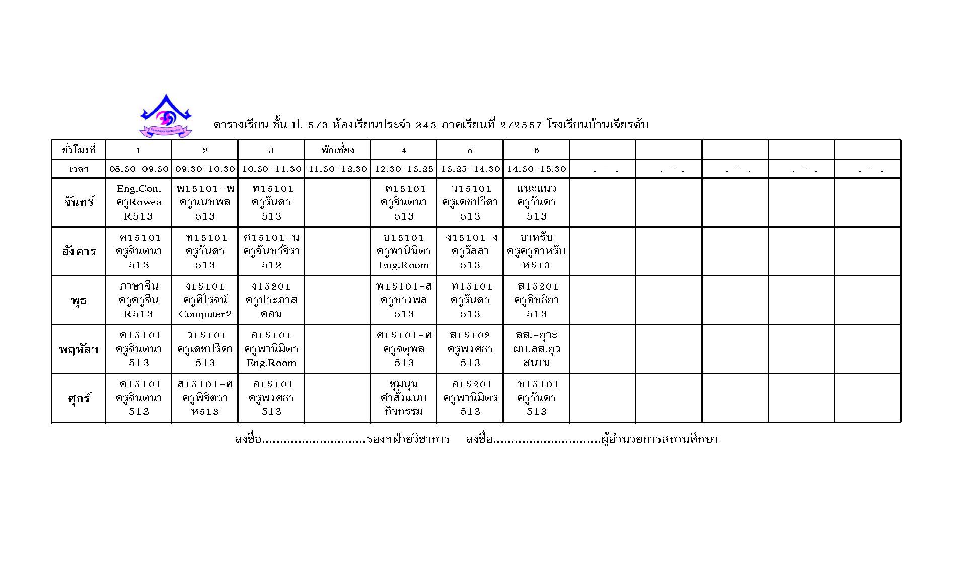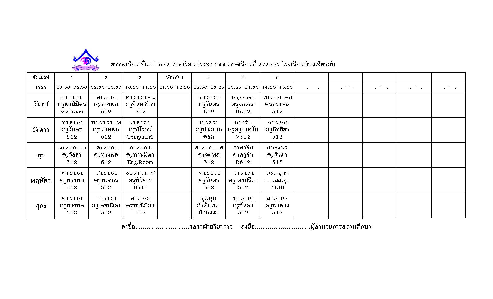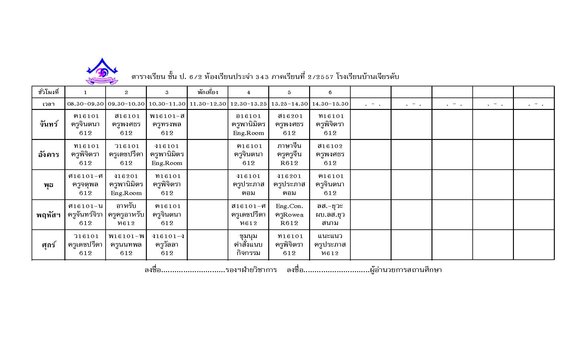 ตารางสอน ภาคเรียนที่ 2 ปีการศึกษา 2557 (24 ต.ค. 25578)